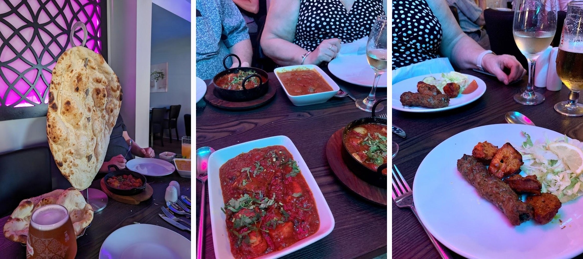 Friday night, family of 4. I have to say this is the best Indian meal I have ever had! I ordered the Balti exotica and it was fantastic! The staff are lovely and attentive. The prices are good too. The only thing that I can say was that the setting is too dark (I struggled to read the menu) and the tables are quite small to fit everything onto. A slightly bigger table with a table cloth/covering and central candle for ambience would really set the scene. My new favourite place for a s’uper tasty-hits the spot’ Indian cuisine.